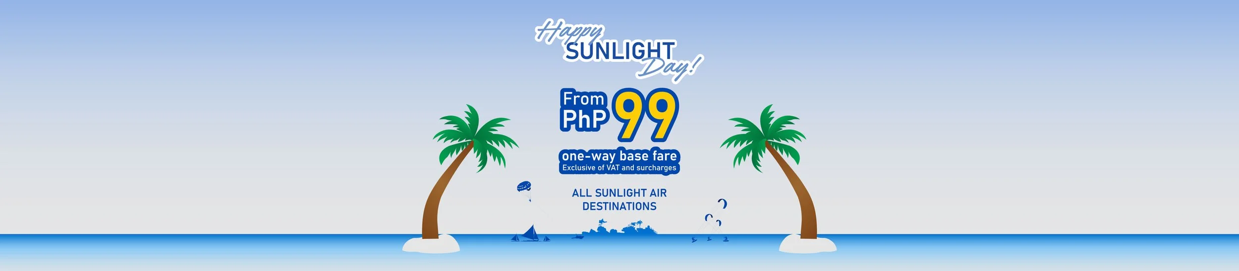 Fly for as low as Php 99 one-way base fare on all Sunlight Air routes.